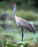 Cranes usually lay two eggs in late April or early May. Incubation takes 28-30 days, with both sexes incubating 50% of the time. During nesting season cranes are shy, secretive, and easily disturbed. Usually only one chick survives to migrate with the flock in the fall.